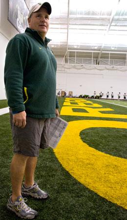 We’ve written about our favorite football coach, Chip Kelly of the Oregon Ducks. Kelly has been a paragon of coaching in his first-year on the job, leading the Ducks last year to a 10-3 record and their first Pac 10 championship since 1995. He did this while insisting on good citizenship from his players, even suspending his top running back for nine games for sucker punching an opposing player after the Ducks’ opening game loss.