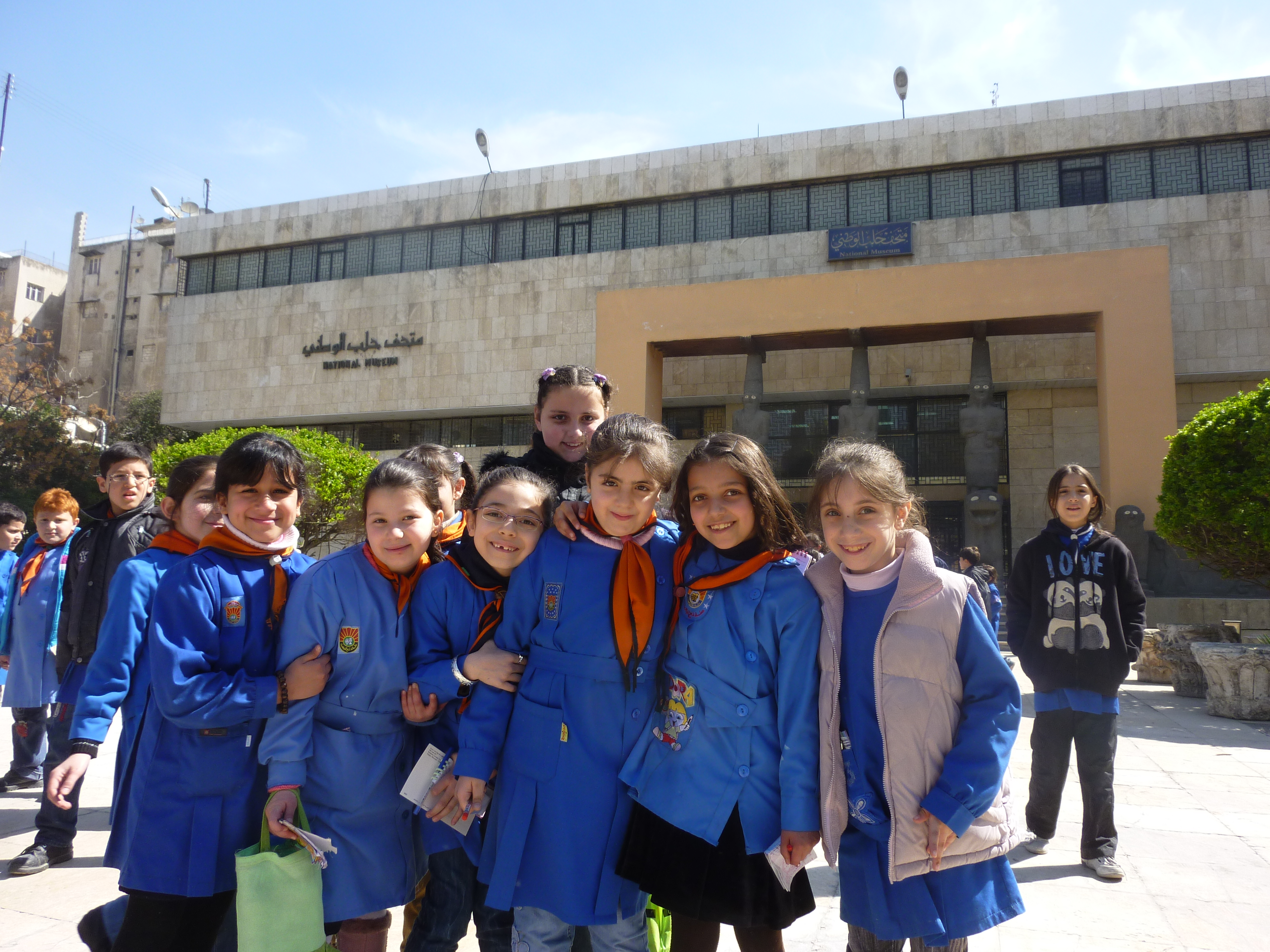 As I read about the massacres in Syria–many hundreds, perhaps thousands of Syrians murdered by tanks, machine guns, helicopters, and artillery fired by their own Army, this picture keeps coming to mind–in March I was framing a photo of the National Museum in Aleppo when these little girls raced into my picture and posed. To me they’re the face of Syria.